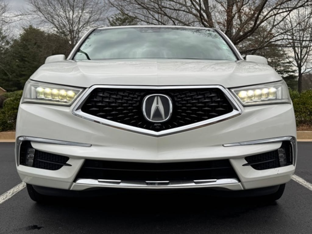 White Diamond Pearl 2019 Acura MDX 3.5L Advance Package AWD 3.5L V6 SOHC i-VTEC 24V 12 Speakers, 3rd row seats: bench, 4-Wheel Disc Brakes, 4.33 Axle Ratio, ABS brakes, Adaptive suspension, Air Conditioning, Alloy wheels, AM/FM radio: SiriusXM, Anti-whiplash front head restraints, Apple CarPlay/Android Auto, Audio memory, Auto High-beam Headlights, Auto tilt-away steering wheel, Auto-dimming door mirrors, Auto-dimming Rear-View mirror, Automatic temperature control, Brake assist, Bumpers: body-color, CD player, Compass, Delay-off headlights, Driver door bin, Driver vanity mirror, Dual front impact airbags, Dual front side impact airbags, Electronic Stability Control, Emergency communication system: AcuraLink, Four wheel independent suspension, Front anti-roll bar, Front Bucket Seats, Front Center Armrest, Front dual zone A/C, Front fog lights, Front reading lights, Garage door transmitter: HomeLink, Genuine wood console insert, Genuine wood dashboard insert, Genuine wood door panel insert, Heated & Ventilated Front Sport Seats, Heated door mirrors, Heated front seats, Heated rear seats, Heated steering wheel, HVAC memory, Illuminated entry, Knee airbag, Lane departure: Lane Keeping Assist System (LKAS) active, Leather steering wheel, Low tire pressure warning, Memory seat, Navigation System, Occupant sensing airbag, Outside temperature display, Overhead airbag, Overhead console, Panic alarm, Passenger door bin, Passenger vanity mirror, Perf Milano Leather w/Contrast Stitching & Piping, Power door mirrors, Power driver seat, Power Liftgate, Power moonroof, Power passenger seat, Power steering, Power windows, Premium audio system: Acura/ELS Surround, Radio data system, Radio: Acura/ELS Studio Premium Audio System, Rain sensing wipers, Rear air conditioning, Rear anti-roll bar, Rear reading lights, Rear seat center armrest, Rear window defroster, Rear window wiper, Remote keyless entry, Roof rack: rails only, Security system, Speed control, Speed-sensing steering, Speed-Sensitive Wipers, Split folding rear seat, Spoiler, Steering wheel memory, Steering wheel mounted audio controls, Tachometer, Telescoping steering wheel, Tilt steering wheel, Traction control, Trip computer, Turn signal indicator mirrors, Variably intermittent wipers, Ventilated front seats, and Wheels: 20" x 8.5" Shark Gray Split 5-Spoke.