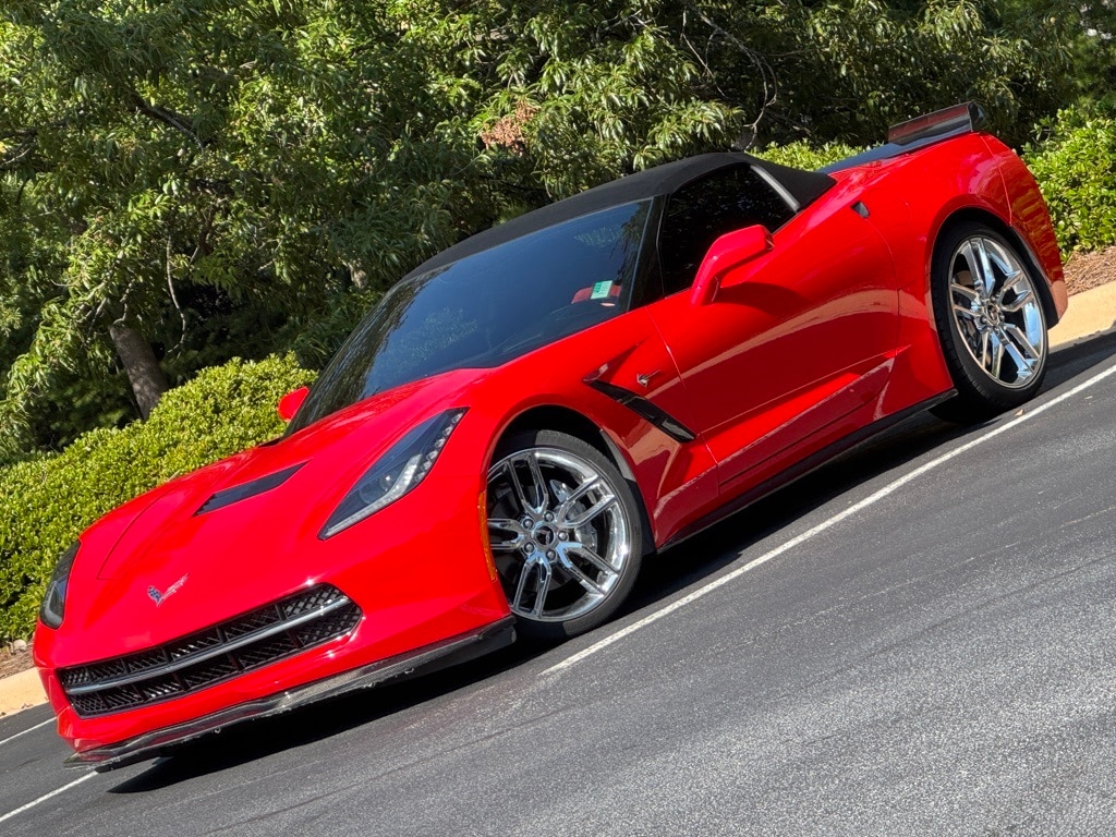 Torch Red 2015 Chevrolet Corvette Stingray RWD 6.2L V8 Memory Package, Preferred Equipment Group 2LT (2LT Interior Trim, Auto-Dimming Inside Frameless Rearview Mirror, Body-Color Outside Heated Power-Adjustable Mirrors, Bose Advanced 10-Speaker Audio System Feature, Cargo Net, Head-Up Display, Heated & Vented Driver & Passenger Seats, Power Lumbar/Bolster Seat Adjusters, Theft Deterrent System, and Universal Home Remote), ZF1 Appearance Package (Body-Color Z51-Style Spoiler and Wheels: 19" x 8.5" Fr & 20" x 10" Rr 5-Split Spoke), 18" x 8.5" Fr & 19" x 10" Rr 5-Spoke Wheels, 4-Wheel Disc Brakes, 8-Way Driver & Passenger Seat Adjusters, 9 Speakers, ABS brakes, Air Conditioning, Alloy wheels, AM/FM radio: SiriusXM, Automatic temperature control, Bose Premium 9-Speaker Audio System Feature, Bumpers: body-color, Compass, Convertible roof lining, Delay-off headlights, Driver door bin, Driver vanity mirror, Dual front impact airbags, Dual front side impact airbags, Electronic Stability Control, Emergency communication system, Exterior Parking Camera Rear, Four wheel independent suspension, Front anti-roll bar, Front Bucket Seats, Front Center Armrest, Front dual zone A/C, Front License Plate Bracket, Front reading lights, Fully automatic headlights, Glass rear window, GT Bucket Seats, Heated door mirrors, High-Intensity Discharge Headlights, Illuminated entry, Leather Shift Knob, Leather steering wheel, Low tire pressure warning, MP3 decoder, Mulan Perforated Leather Seating Surfaces, Occupant sensing airbag, Outside temperature display, Panic alarm, Passenger door bin, Passenger vanity mirror, Performance Exhaust, Power convertible roof, Power door mirrors, Power driver seat, Power passenger seat, Power steering, Power windows, Premium audio system: Chevrolet MyLink, Radio data system, Radio: Chevrolet MyLink Audio System, Rear anti-roll bar, Rear window defroster, Remote keyless entry, Speed control, Speed-sensing steering, Spoiler, Sport steering wheel, Steering wheel mounted audio controls, Tachometer, Telescoping steering wheel, Tilt steering wheel, Traction control, Trip computer, Variably intermittent wipers, Voltmeter, and Wheels: 19" x 8.5" Fr & 20" x 10" Rr Black Alum.