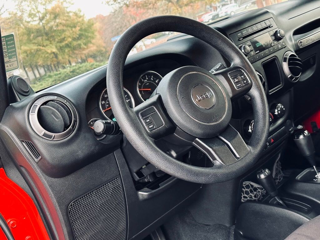 Flame Red Clearcoat 2013 Jeep Wrangler Unlimited Sport 4WD 3.6L V6 24V VVT Quick Order Package 24C, 16" x 7.0" Luxury Styled Steel Wheels, 3.21 Rear Axle Ratio, 4-Wheel Disc Brakes, 6 Speakers, ABS brakes, Air Conditioning, AM/FM radio, Brake assist, CD player, Cloth Bucket Seats, Compass, Driver door bin, Driver vanity mirror, Dual front impact airbags, Electronic Stability Control, Front anti-roll bar, Front Bucket Seats, Front Center Armrest w/Storage, Front fog lights, Integrated roll-over protection, Low tire pressure warning, Normal Duty Suspension, Occupant sensing airbag, Outside temperature display, Passenger door bin, Passenger vanity mirror, Power steering, Radio: Uconnect 130 AM/FM/CD/MP3, Rear anti-roll bar, Speed control, Split folding rear seat, Steering wheel mounted audio controls, Sunrider Soft Top, Tachometer, Tilt steering wheel, Traction control, Trip computer, and Variably intermittent wipers.