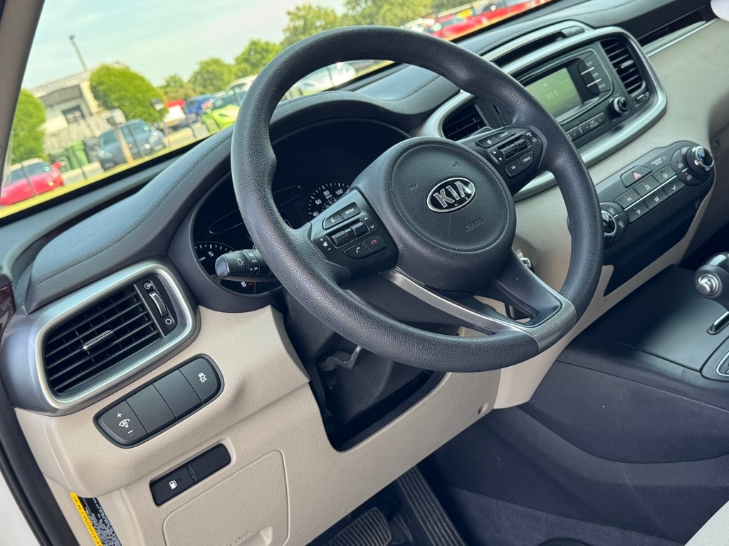 Snow White Pearl 2016 Kia Sorento LX FWD 3.3L DOHC 3.32 Axle Ratio, 3rd row seats: split-bench, 4-Wheel Disc Brakes, 6 Speakers, ABS brakes, Air Conditioning, Alloy wheels, AM/FM radio: SiriusXM, Brake assist, Bumpers: body-color, Carpet Floor Mats (7 Seat), CD player, Delay-off headlights, Driver door bin, Driver vanity mirror, Dual front impact airbags, Dual front side impact airbags, Electronic Stability Control, Exterior Parking Camera Rear, Four wheel independent suspension, Front anti-roll bar, Front Bucket Seats, Front Center Armrest, Front reading lights, Fully automatic headlights, Heated door mirrors, Illuminated entry, Low tire pressure warning, Occupant sensing airbag, Overhead airbag, Overhead console, Panic alarm, Passenger door bin, Passenger vanity mirror, Power door mirrors, Power steering, Power windows, Radio: AM/FM/CD/MP3/SiriusXM, Rear anti-roll bar, Rear seat center armrest, Rear window defroster, Rear window wiper, Remote keyless entry, Roof rack: rails only, Security system, Speed control, Speed-sensing steering, Split folding rear seat, Spoiler, Steering wheel mounted audio controls, Tachometer, Telescoping steering wheel, Tilt steering wheel, Traction control, Trip computer, Turn signal indicator mirrors, Variably intermittent wipers, Wheels: 17" x 7.0 Alloy, and YES Essentials Cloth Seat Trim.